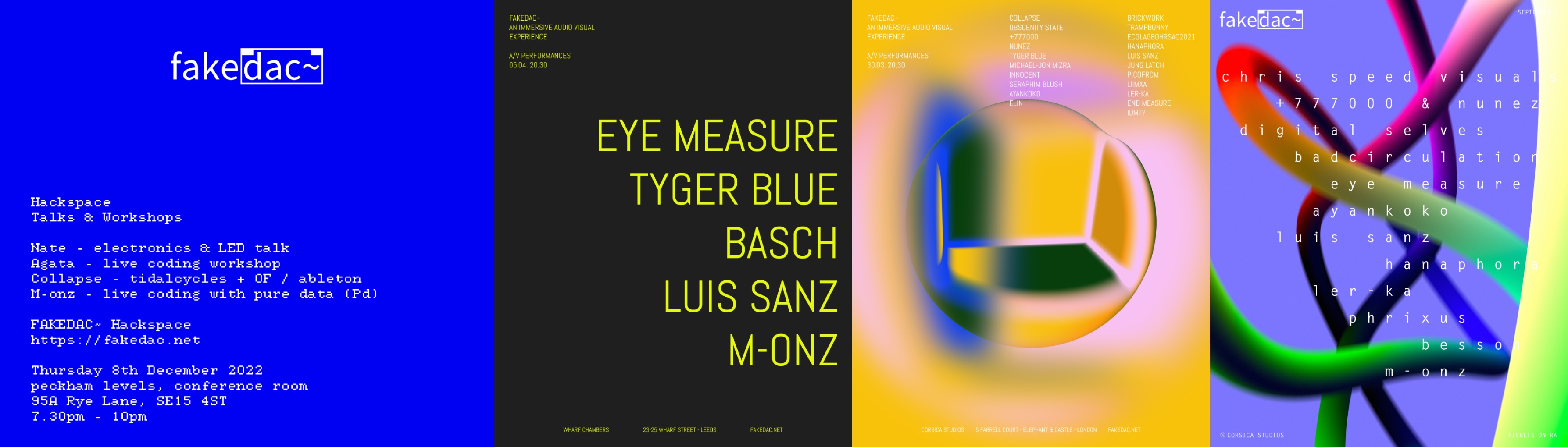 Between 2022 and 2025, fake[dac~] organized a series of events and collaborations that showcased a broad spectrum of experimental performances by invited artists, including: